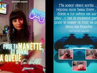 Brunette francaise suce la queue de beau-frere pendant qu'il joue a Fortnite