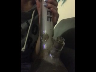 Bbw smoking with her big tits out and using herself as a human ashtray